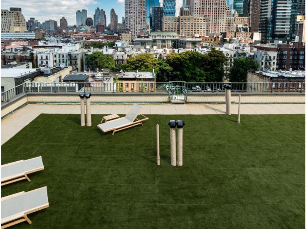 Výhodou této dlažby je souvislá vrstva volně přecházející z klasické gumové dlažby do umělého trávníku. Díky tomu se nemůže stát, že by se jednotlivé vrstvy oddělily. Gumová dlažba Grass zaručuje přirozený vzhled a zárověň vysoké tlumící vlastnosti povrchu. Proto se ideálně hodí jako přirozený a bezpečný povrch dětských hřišť. Integrovaný trávník je také speciálně vyroben s vysokou odolností proti opotřebení.