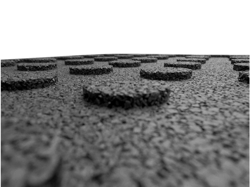 Gumová dlažba je plně UV odolná, snadno se čistí a díky "fazetkám" na krajích výborně odvádí vodu z povrchu. Díky nopovanému drenážnímu profilu spodní části, dochází k dokonalému odvodu kondenzované vlhkosti i vody. Dlažba je opatřena protiskluzovou úpravou, hodí se tedy mimojiné i na schodiště, okraje bazénu, na zahradní cesty apod. Dlažba neklouže ani v případě přímého deště.