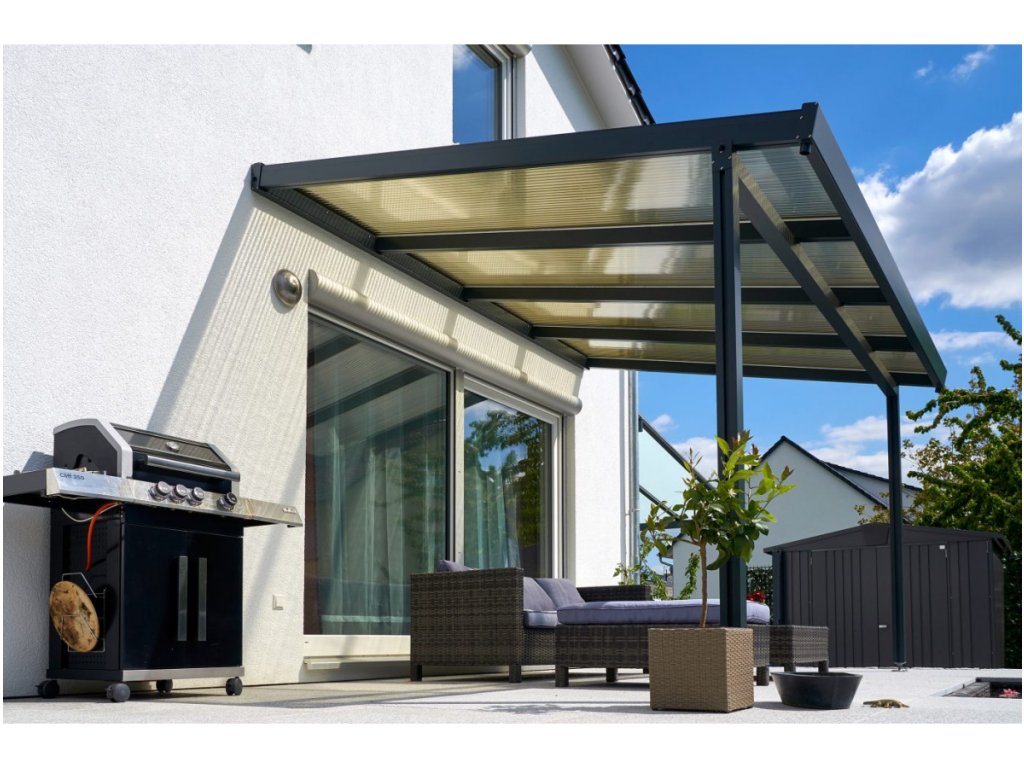 Hliníková pergola Terrassendach Premium - bronzový akryl / antracitová konstrukce