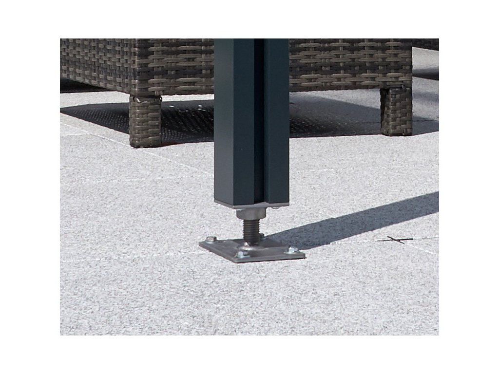 Zastřešení pergoly je tvořeno bronzovým akrylovým sklem o síle 16 mm s UV ochranou. Díky našim dosavadním zkušenostem a propracovanému výrobnímu postupu jsou všechny stojny, příčníky a krokve masivnější a odolnější. Konstrukce díky tomu snese i vysoké zatížení sněhem. Stojny jsou opatřeny výškově stavitelným systémem pro snadné vyrovnání výškových nerovností. Na pergolu poskytujeme až 10 letou záruku.
