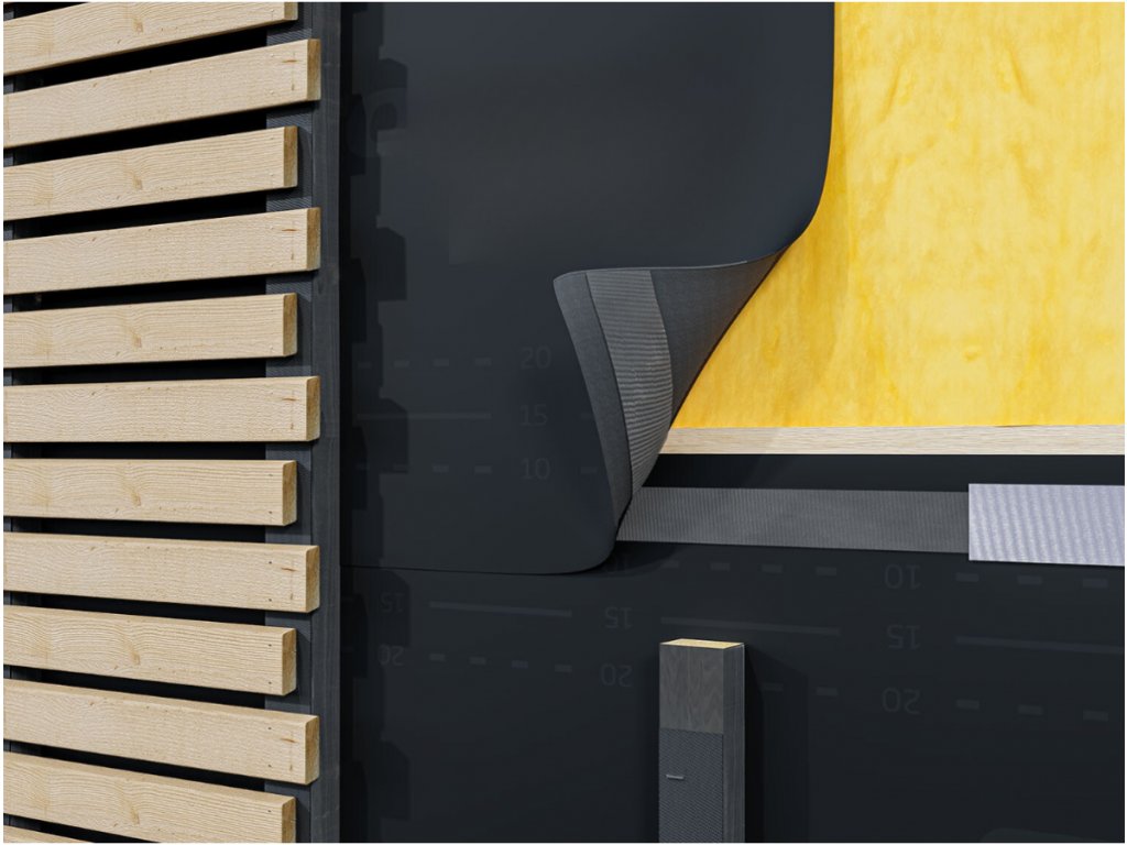 Paropropustná fólie Guttafol UV Fassade - Trvale UV odolná fasádní fólie s dvěma integrovanými samolepícími pásky určená do provětrávaných skládaných fasád s přiznanými spárami až 50 mm.Doplňkové parametry