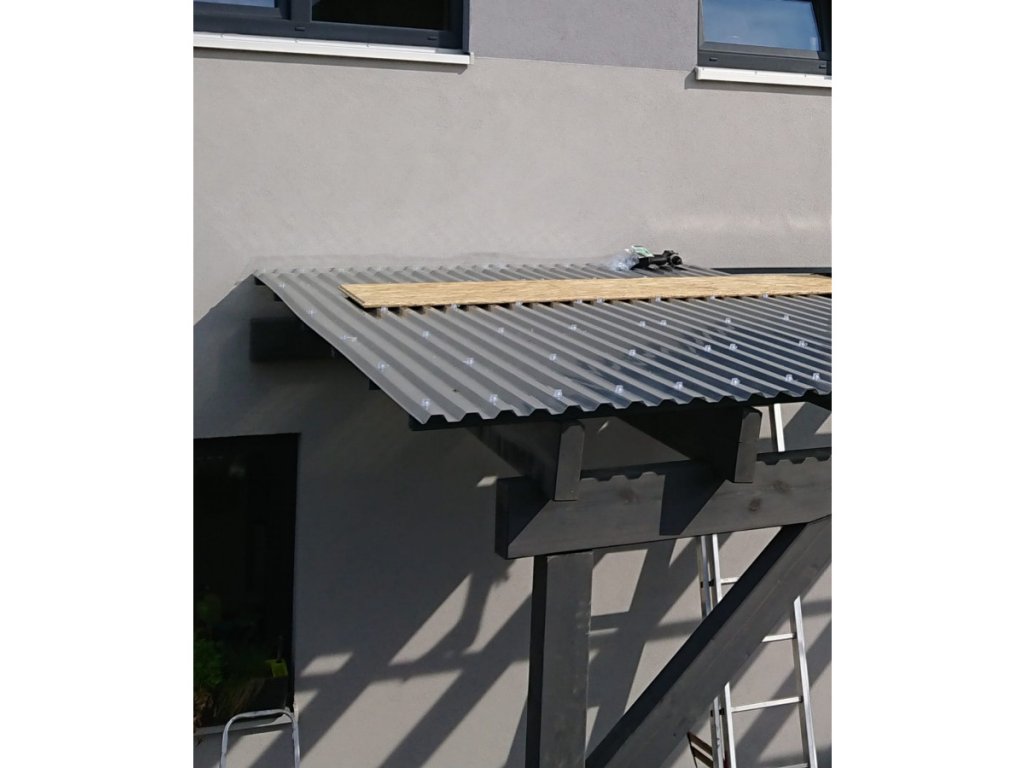 Pro zastřešení pergol polykarbonátem je vhodné jako podkladní konstrukci zvolit dřevěnou. Horní líc podkladních latí je nutno opatřit bílým nátěrem, nebo použít metalizovanou páskou Guttaband AL, aby se předešlo nadměrnému přehřívání konstrukce. Při použití impregnačních prostředků pro ochranu dřeva je nutno ošetřené konstrukční části nechat řádně vyschnout, aby nedošlo k výskytu barevných skvrn na spodní straně desek. Desky se pokládají vždy hrubou strukturou dolů. Hladká strana směrem nahoru ke slunci. Maximální povolená rozteč latí je 800 mm. V oblastech s nadmořskou výškou 600 m a výše by měla být tato rozteč poloviční. Desky pokládejte z opačné strany, než je směr převládajícího větru, a to tak, aby druhá řada desek začínala polovinou desky. Při montáži se musí do každého profilu, kam se šroubuje vrut dát distanční podložka trapéz. Pro připevnění používejte pouze vruty s plastovou podložkou např. nerez vrut V2A. Počet je cca 12 ks na 1 m2. Vruty se připevňují v každém třetím vrcholu. V případě, že desky pokládáte v místě s nepříznivými povětrnostními podmínkami, doporučujeme připevnit trapézové desky v každém druhém vrcholu. V přesazích připevněte trapézové desky na každém vrcholu. Desky nedoporučujeme spojovat lepením ani šrouby. Pouze se navzájem překládají.