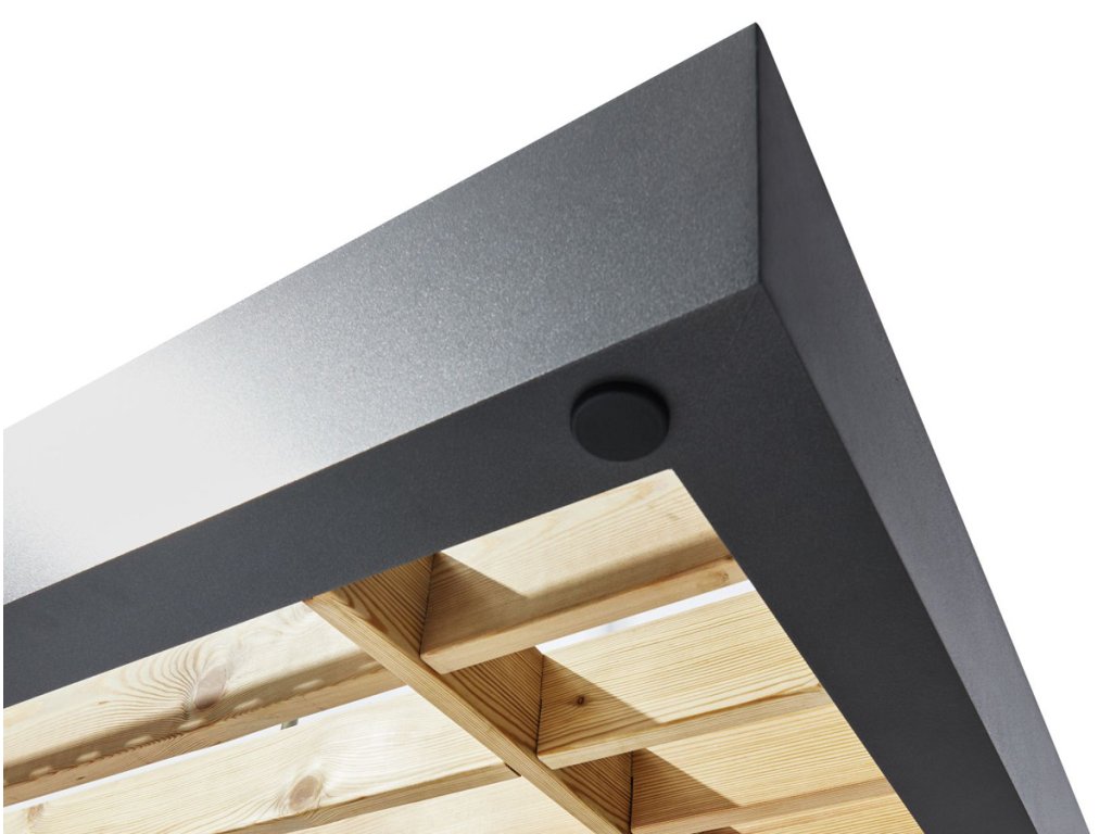 Jedná se o přírodní materiál, který je vhodný do nejnáročnějších podmínek. Hliník je nerezový, neoxiduje, trvale odolává nepříznivému počasí i slunci. Díky povrchové úpravě, v podobě práškového lakování, získává povrch jemnou strukturu. Stříška tedy získává atraktivní, moderní vzhled při zachování vynikající mechanické odolnosti.