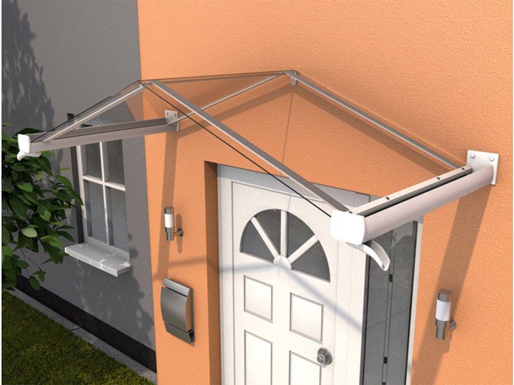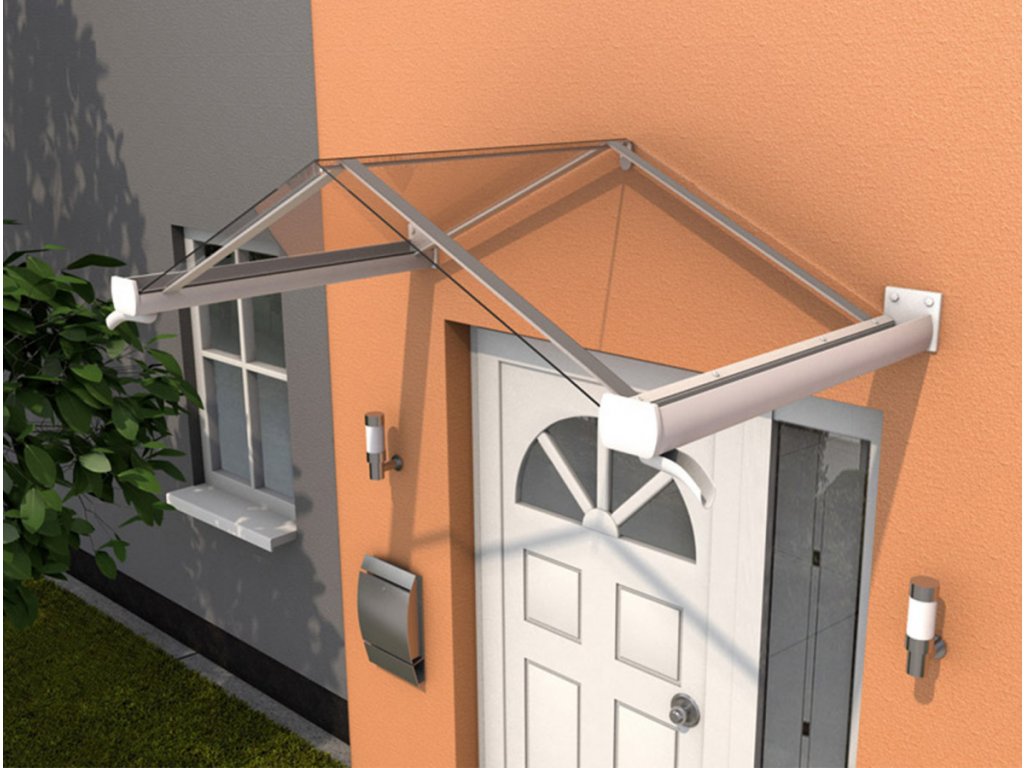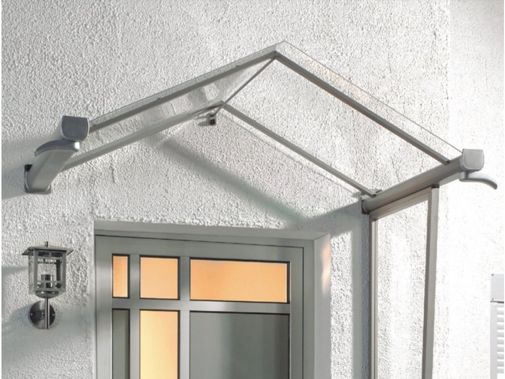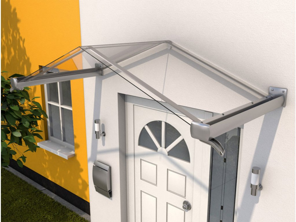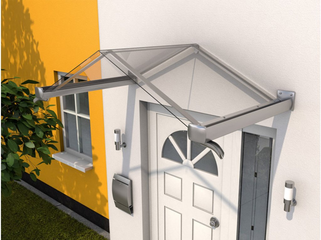Guttavordach = německý standart pro vchodové stříšky. Stříška nad vchodové dveře Guttavordach GV/T je vchodová stříška vyrobená ze 4 mm silného akrylového skla a práškově lakovaných hliníkových konzol s okapem. Vchodová stříška je vhodná pro zastřešení vchodů, balkonů, výloh obchodů nebo například pro zastřešení nad bankomaty. Testováno na zatížení sněhem 75 kg/m2. K této stříšce je možné pořídit boční stěnu (není součástí dodávky). Vchodové stříšky obsahují kotvení pouze do nezateplené fasády (hmoždinky, šrouby). Chemické kotvy, závitové tyče nejsou součástí dodávky.