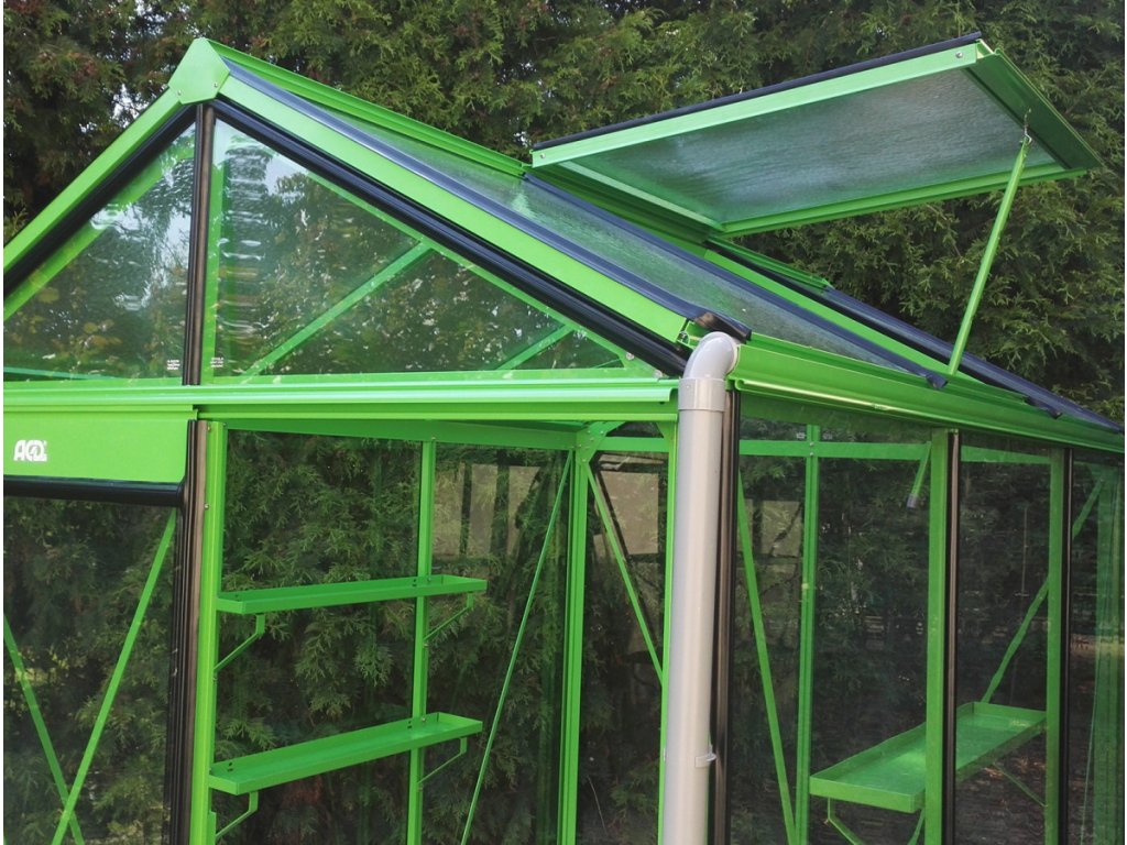 Designový skleník v té nejvyšší dostupné kvalitě. TOP produkt na trhu. Robustní konstrukce z hliníkových profilů je osazena bezpečnostními skly o tloušťce 4 mm. Bezpečnostní sklo odpovídá normě EU EN 12150. Sklo je 7x silnější než běžná skleníková skla. Pokud by přesto došlo k prasknutí, rozpadne se stejně, jako autosklo na neškodné kousky. Při výrobě skleníku je kladen důraz na každý detail, proto výrobce ACD garantuje 12 letou záruku na všechny výrobní a materiálové vady. Pryžové těsnění v zasklívacích lištách zajišťuje skvělou vodo i vzduchotěstnost. Skleník je možné objednat nenabarvený v přírodním hliníku, nebo v jákékoli barvě z tabulky RAL (ve které je přes 200 barev).