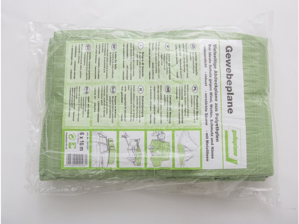 Univerzální tkaná zakrývací plachta. Zakrývací plachty Guttaplane Standard mají zdvojený okraj s ocelovými oky (na každý 1 m délky). Díky tomu lze zakrývací plachty snadno upevnit nebo jimi provléct provaz a zajistit tak, aby plachta zůstala opravdu tam, kde ji chcete mít. UV stabilní. Barva: líc - zelená; rub - šedozelená hmotnost 80 g/m2.